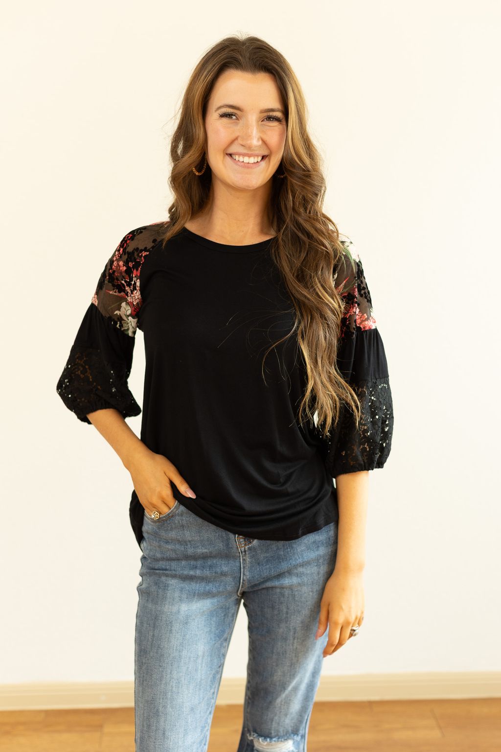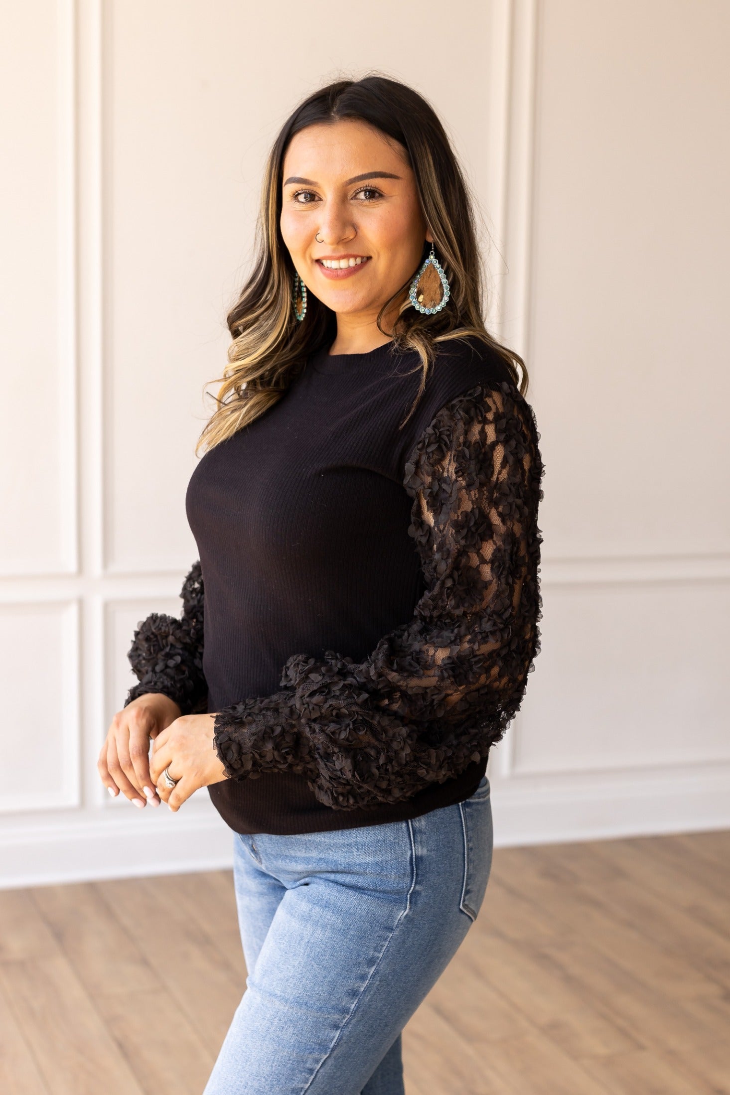 Black Shimmer Bodysuit with Ruffle Shoulder Sleeve