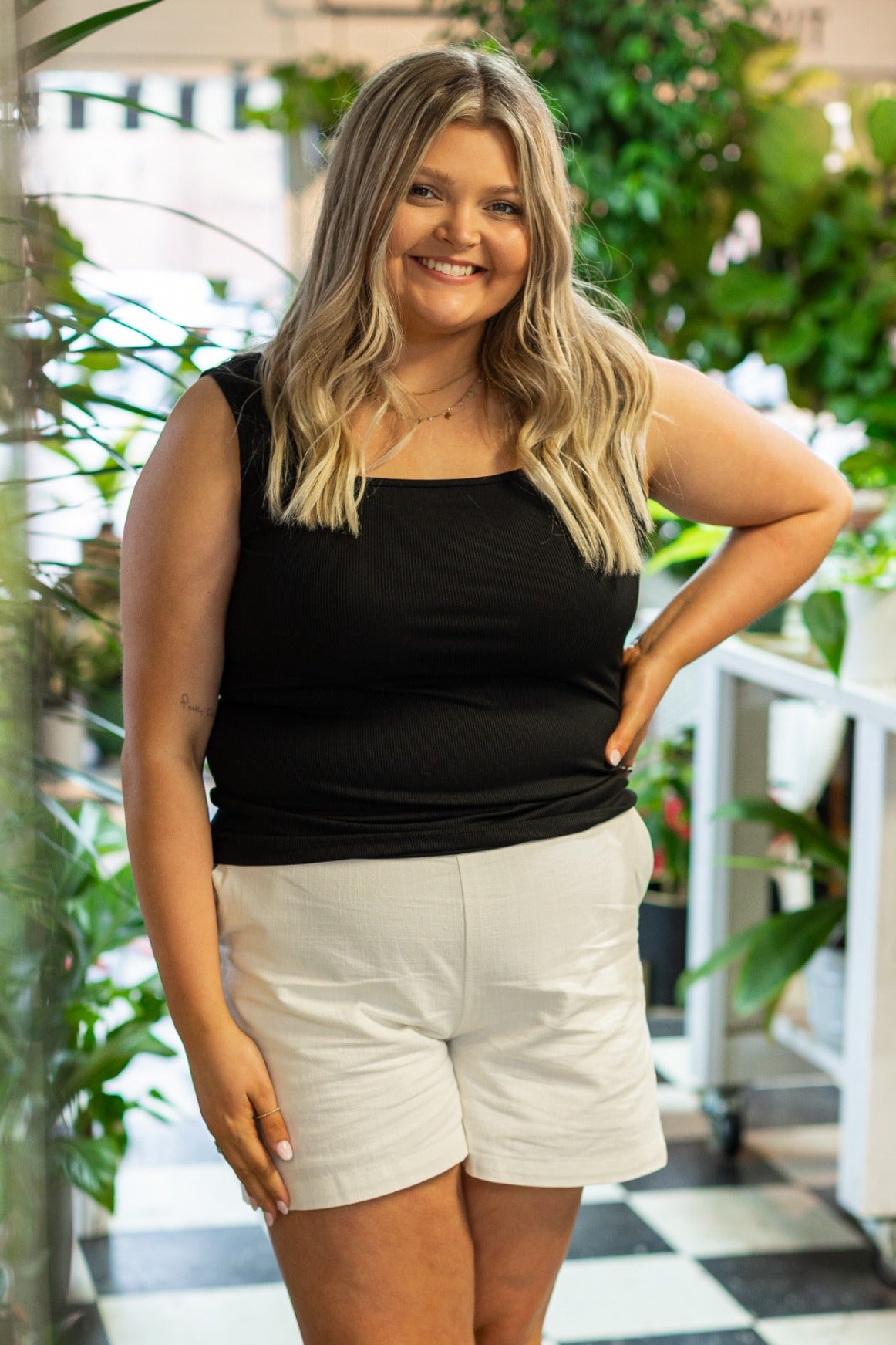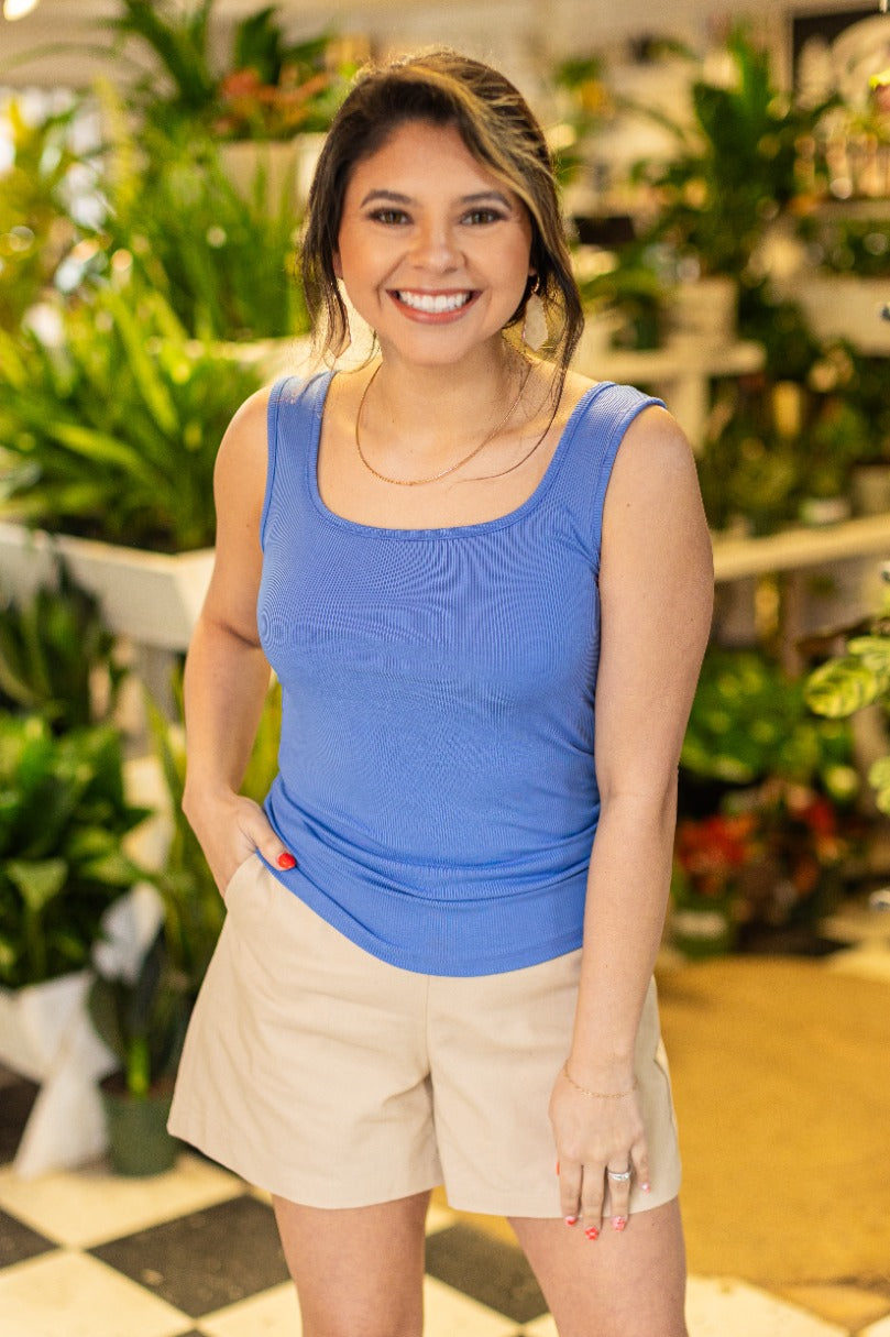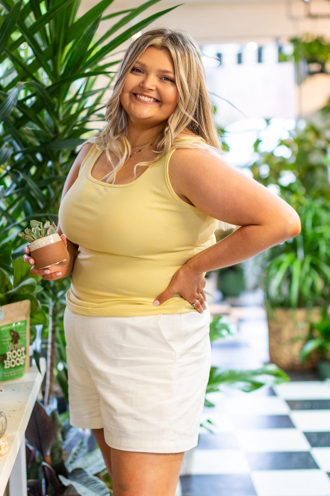 Bella Square Neck Rib Knit Tank Top, Yellow