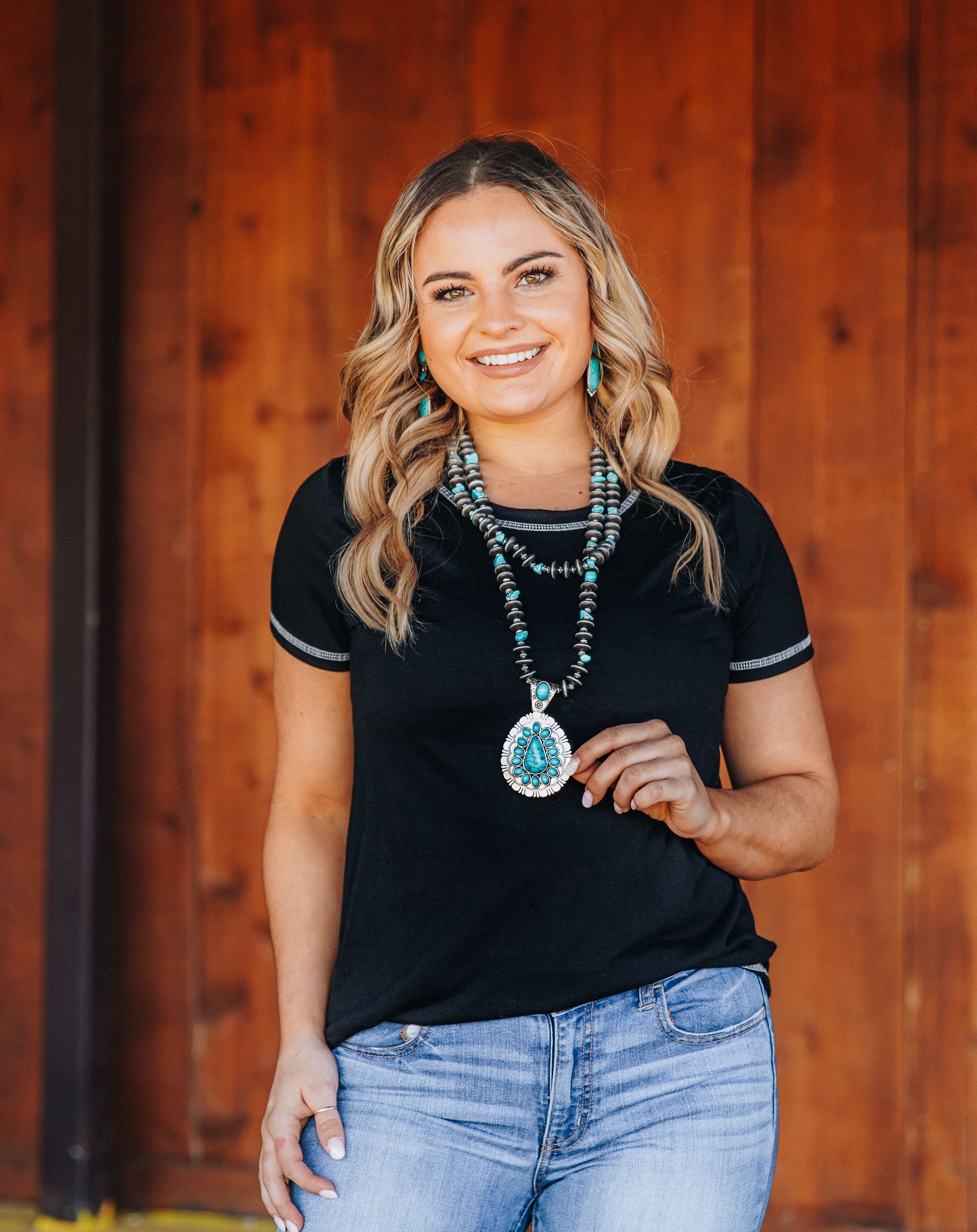 Serape & Leopard Oklahoma Patch on Turquoise Crewneck Tee