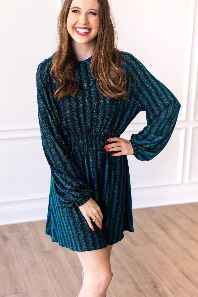 The shimmering fabric exudes a celestial glow, capturing the essence of the Northern Lights. Whether you're attending a cocktail party, a wedding, or a special celebration, this dress ensures you stand out with grace and style. The flattering silhouette accentuates your figure, while the deep colors add a fabulous touch of opulence.