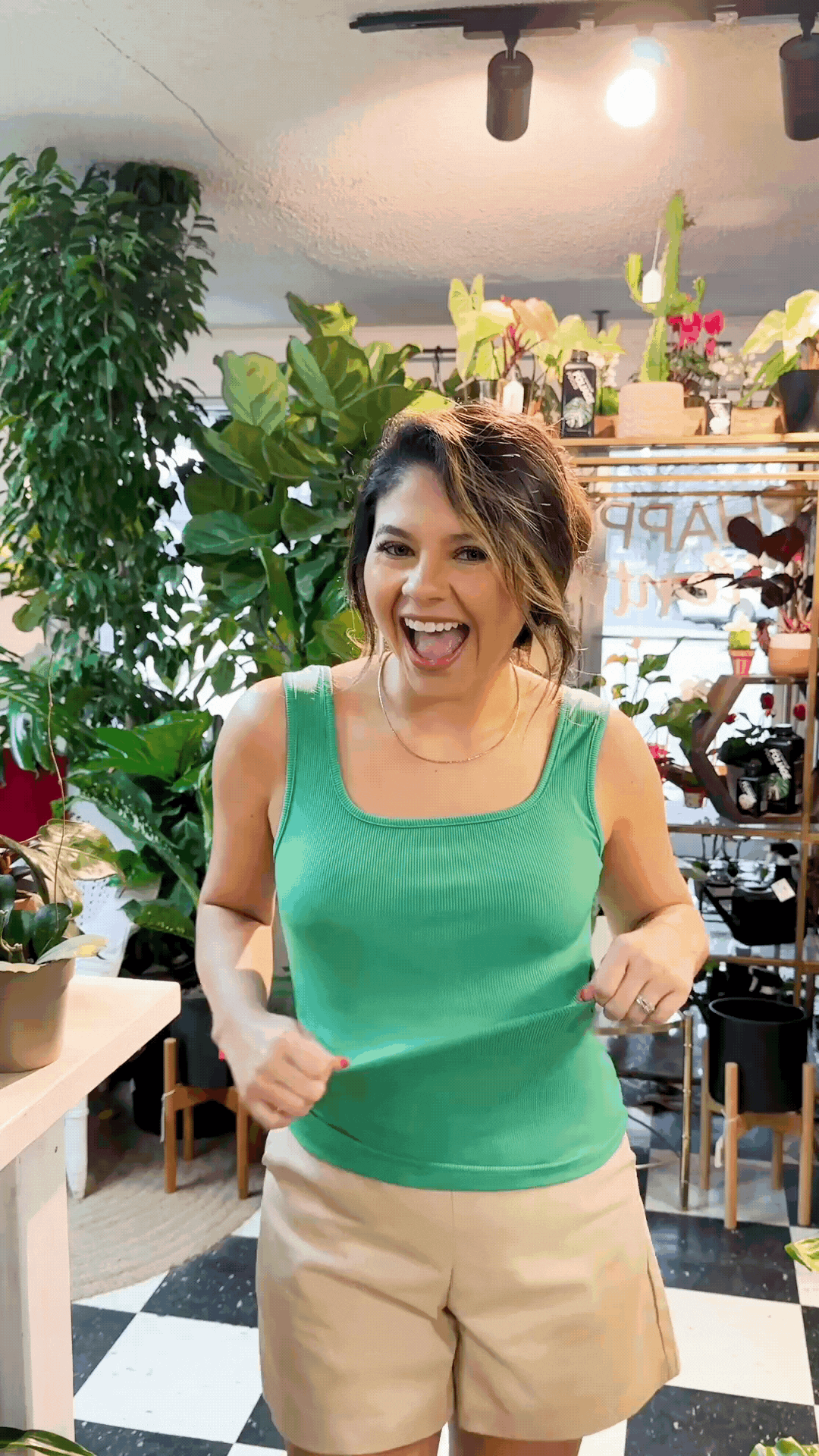 Bella Square Neck Rib Knit Tank Top, Green(Green,XS)