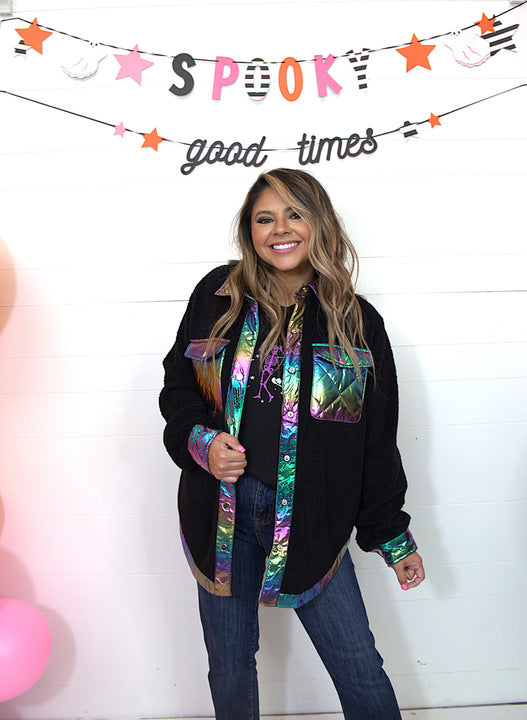 Whether you're running errands, meeting friends for coffee, or heading out for a casual night out, the Dark Horizons Black Sherpa Shacket is the ideal choice. Pair it with jeans and boots for a classic look, or layer it over a dress for a trendy and chic ensemble.