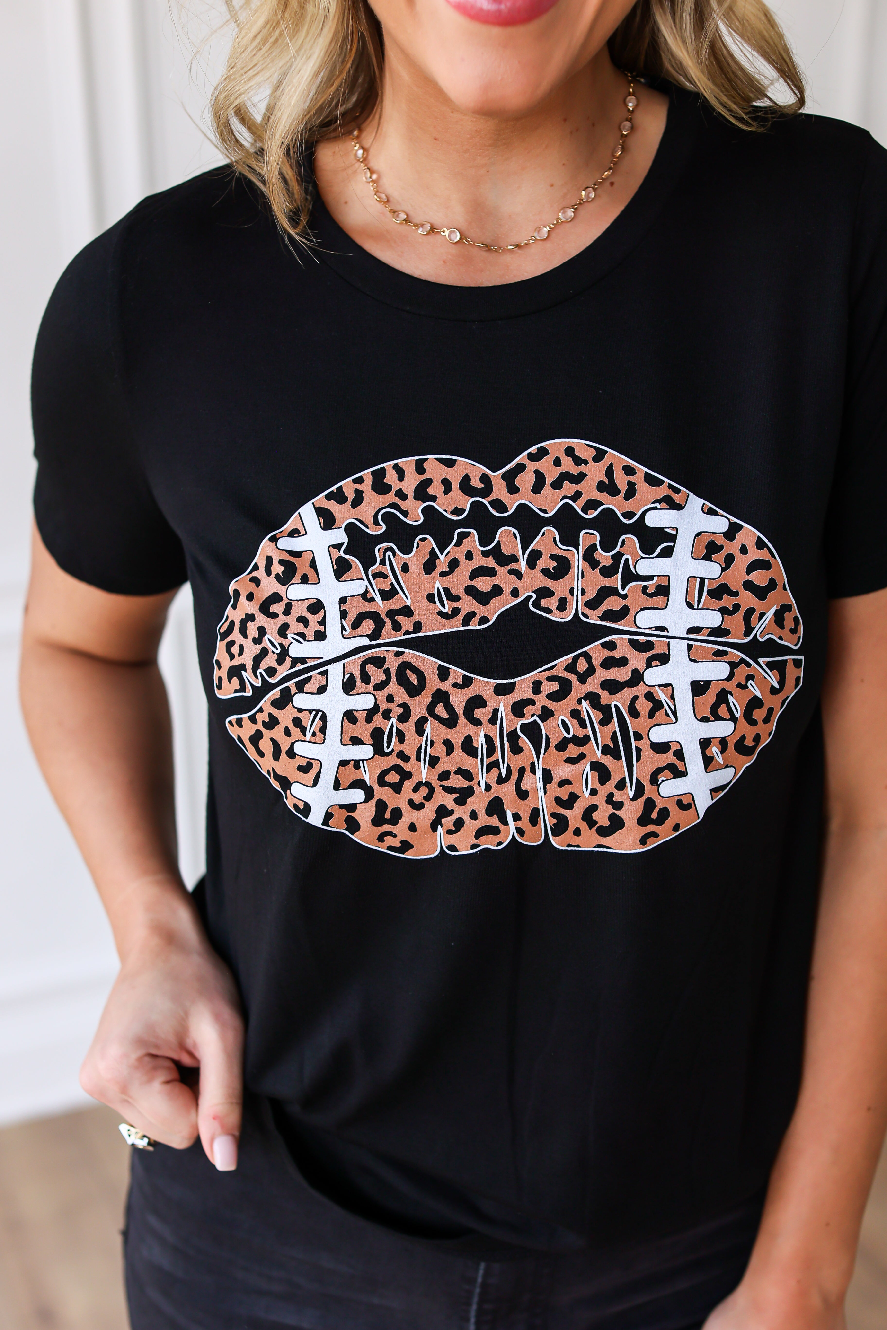 Football Leopard Lips on Black Crewneck Tee: A fierce fusion of sport and style