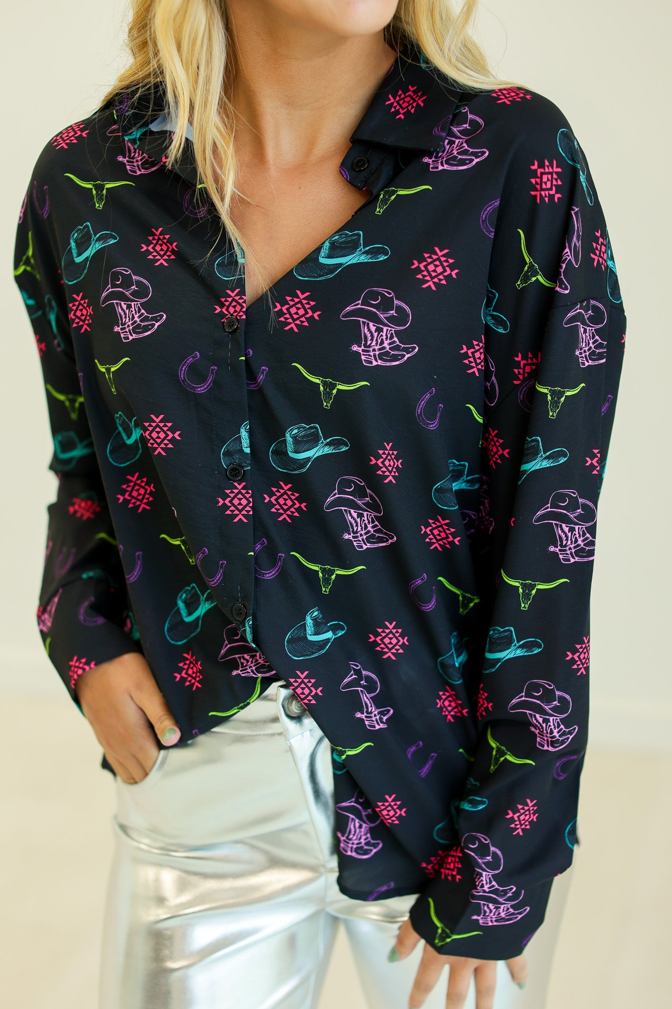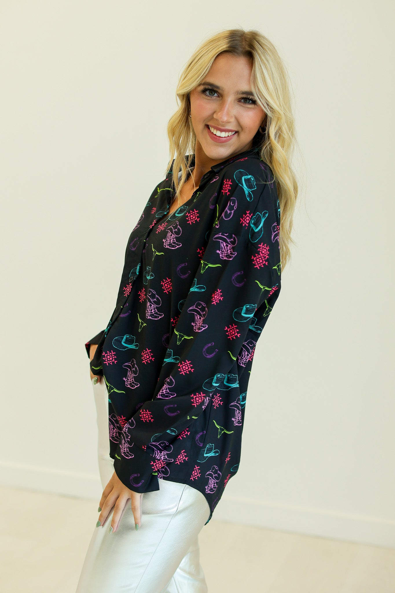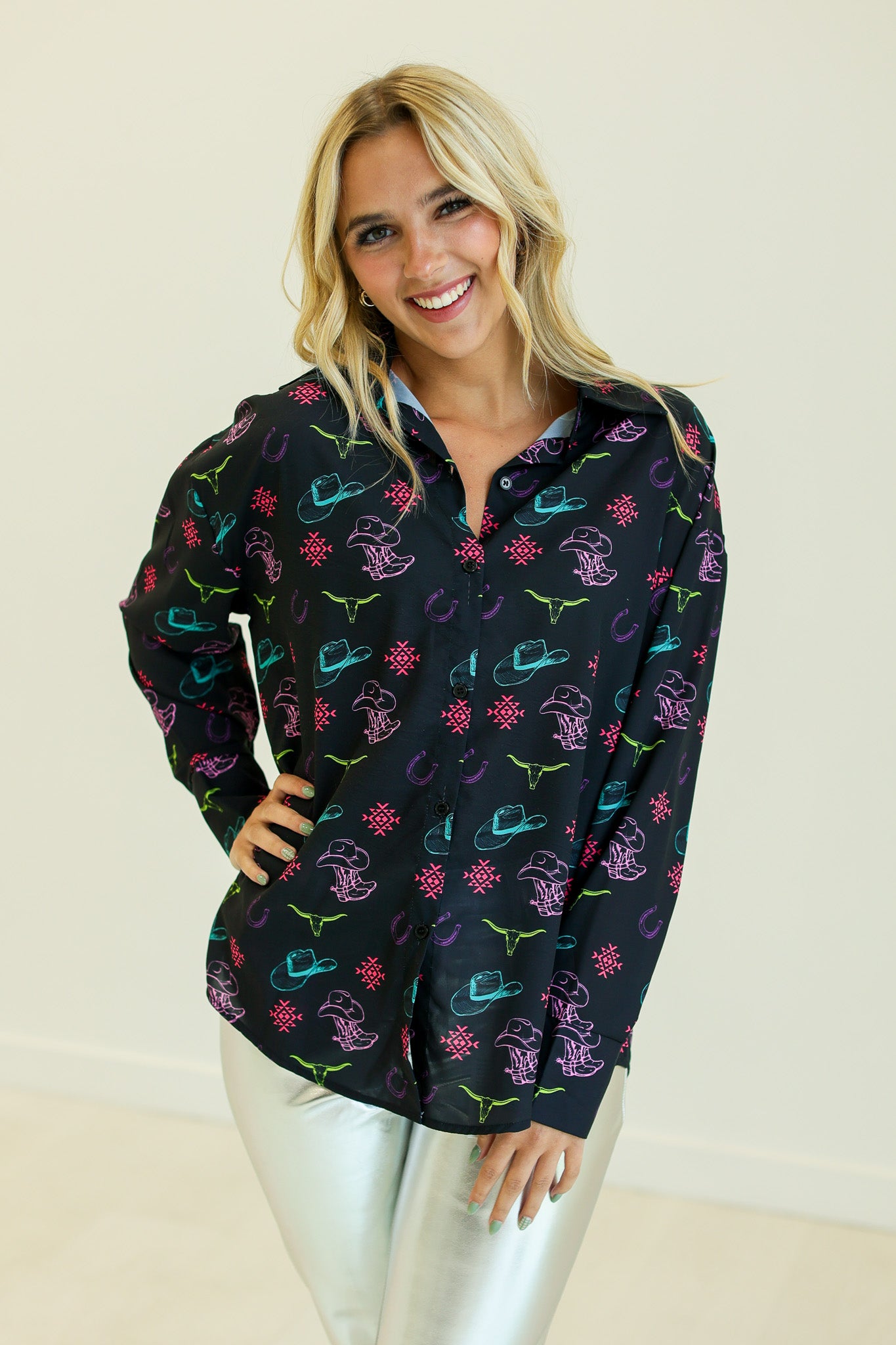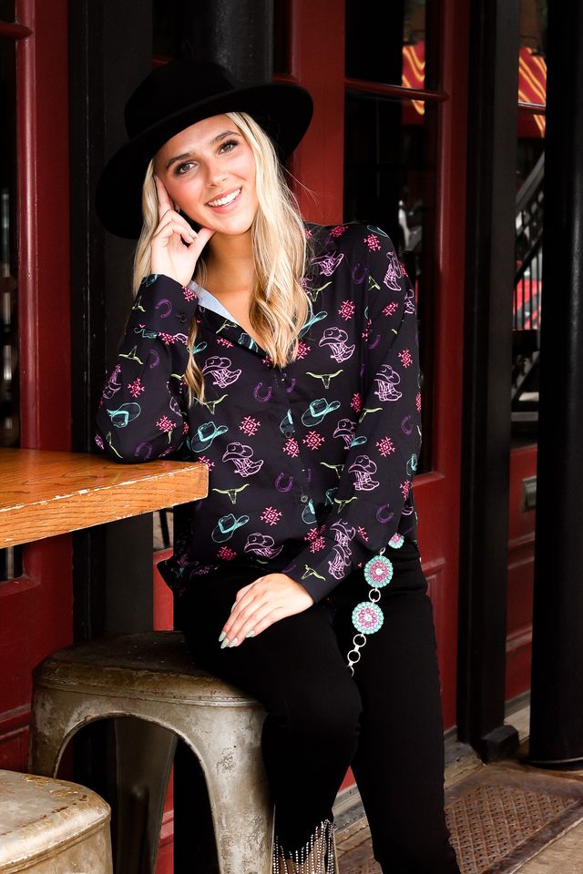 Kathryn Classic Button-Up, Black Western Elements(Black,XS)
