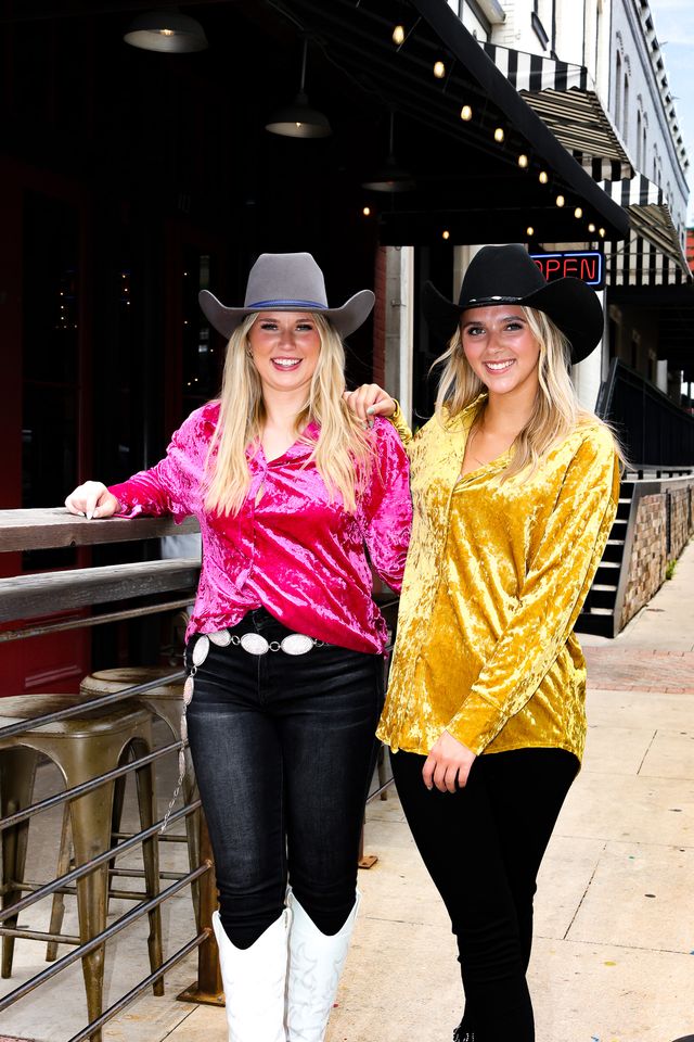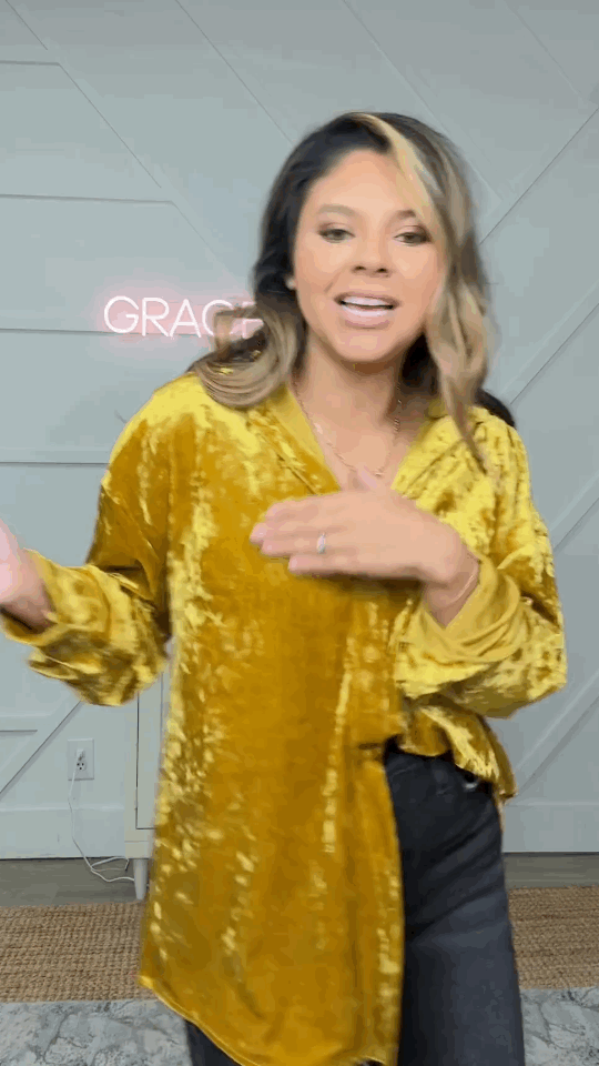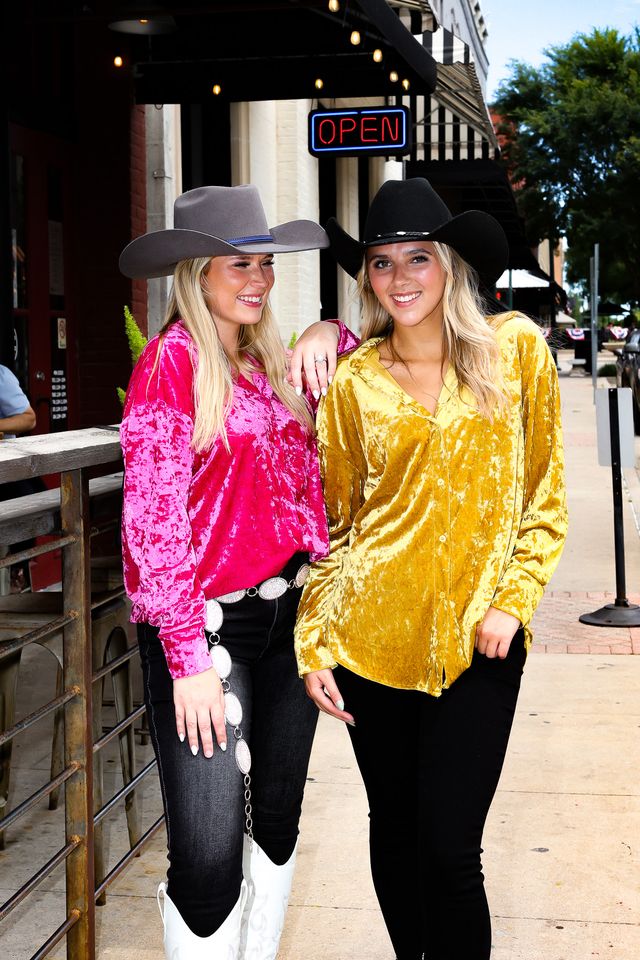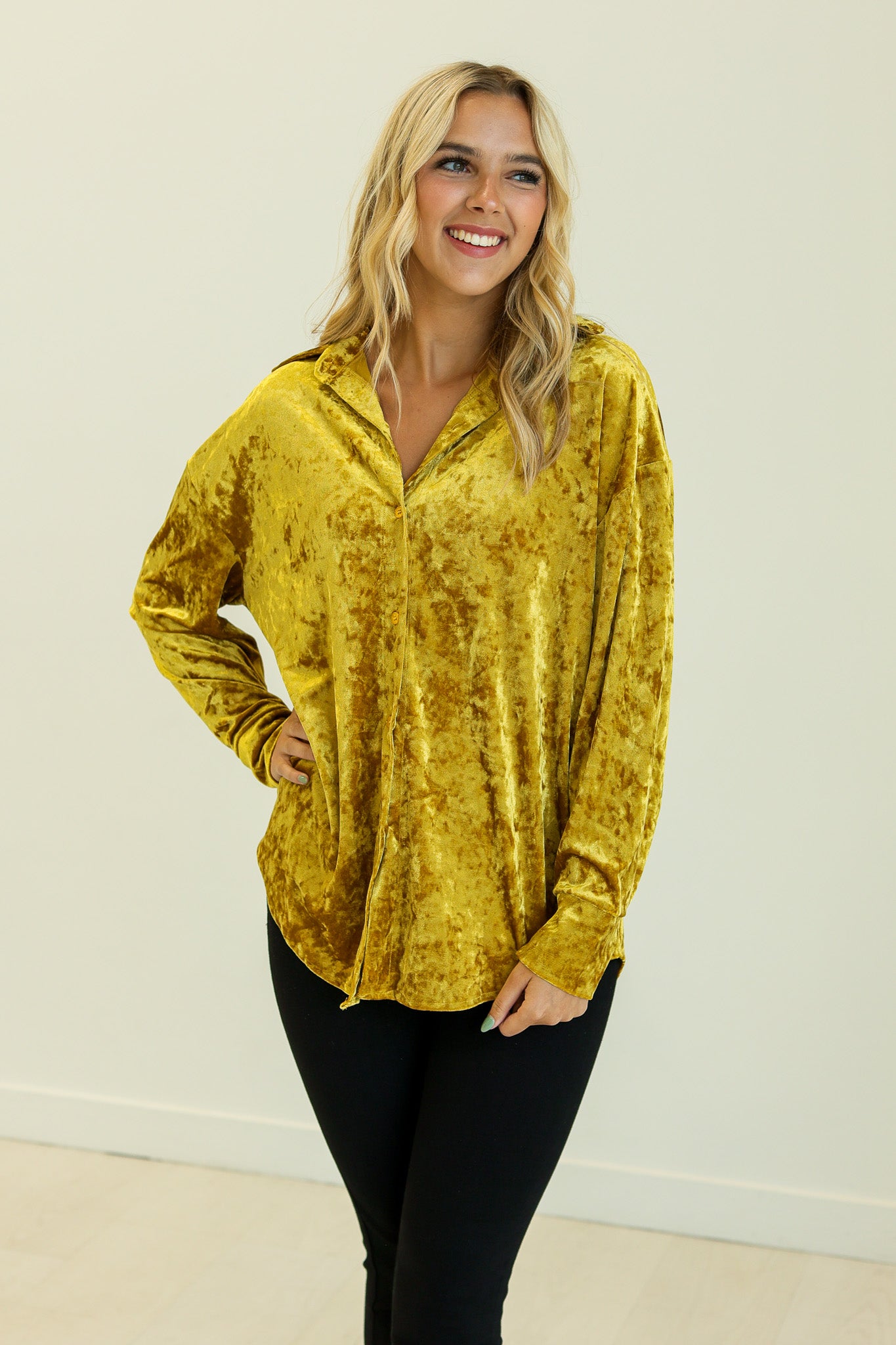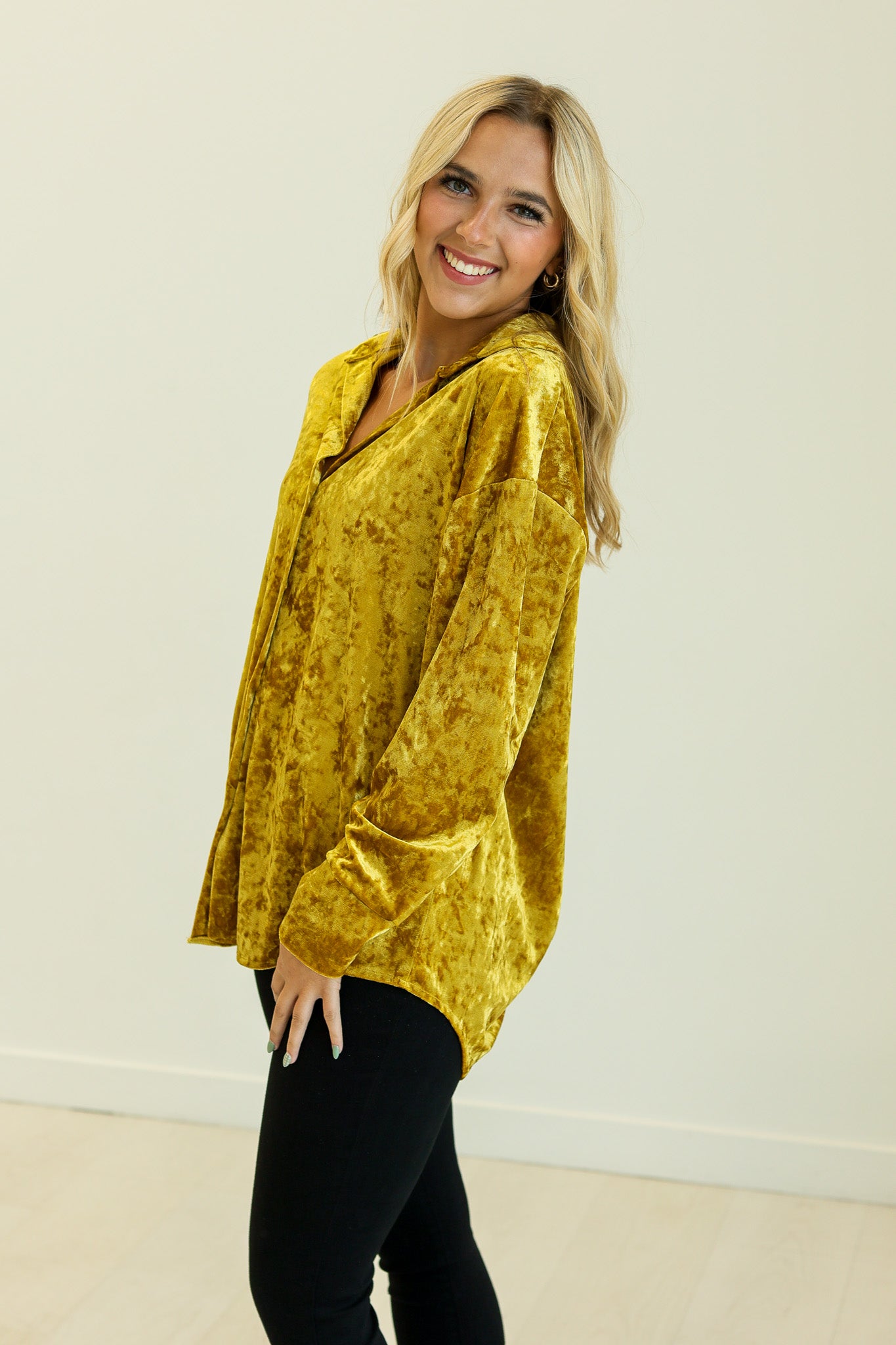 Kathryn Classic Button-Up, Mustard Velvet(Yellow,XS)