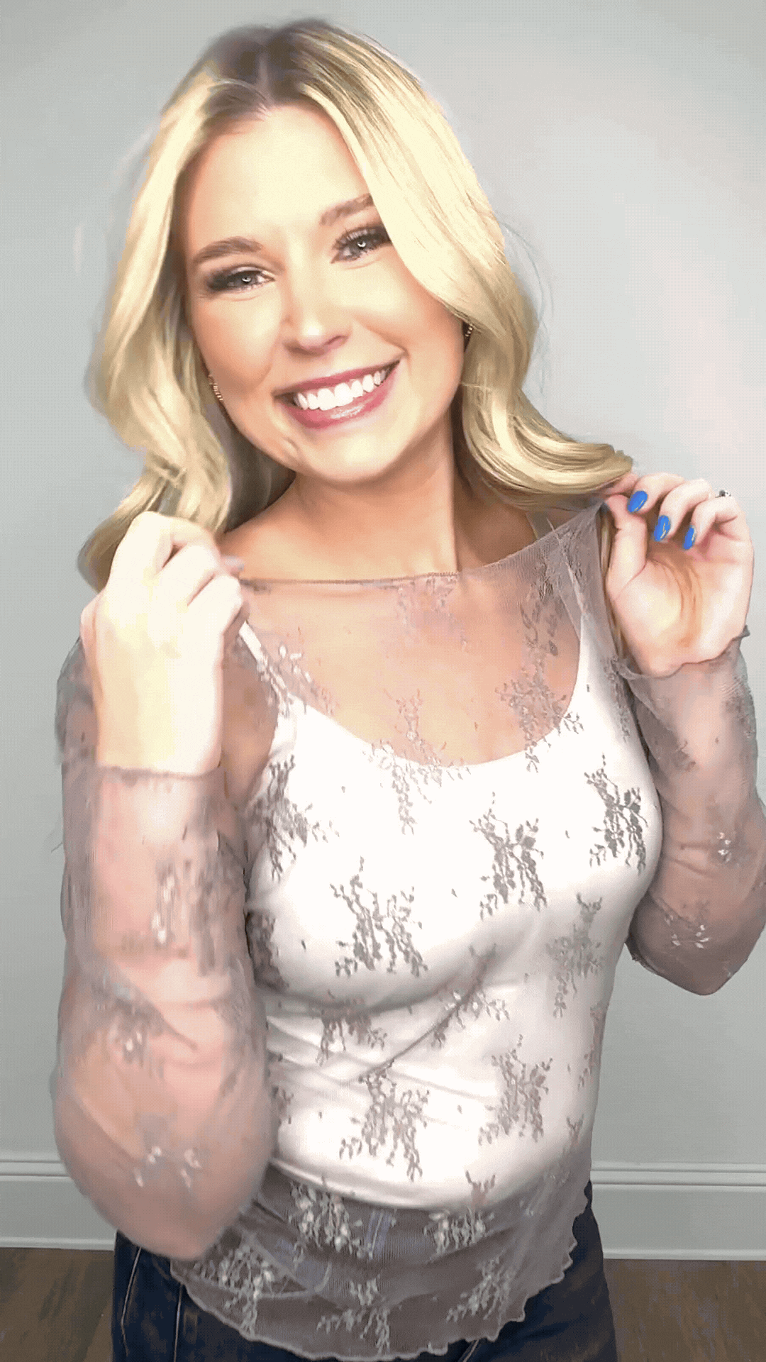 Lace Long-sleeve Top, Grey(Grey,XS)