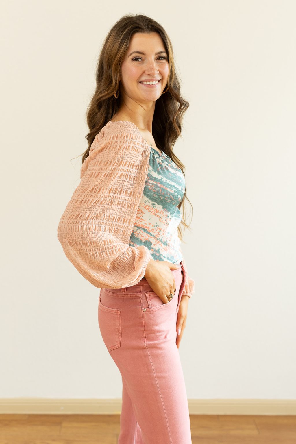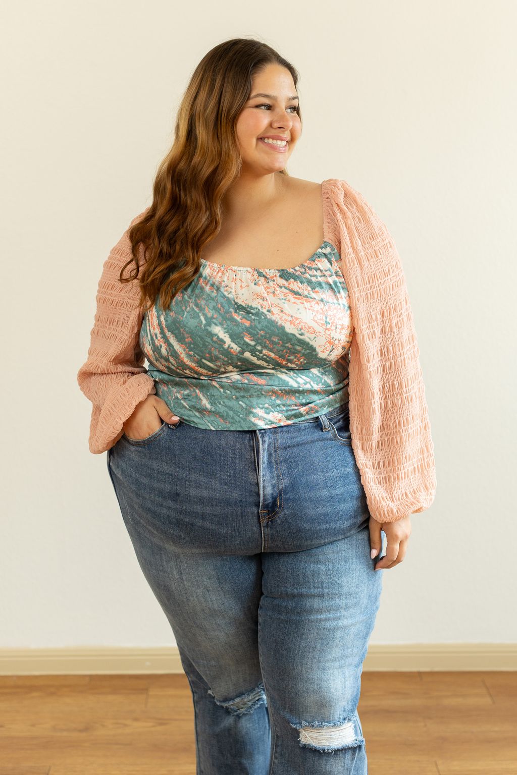 Our Marbled Blouse is a stylish and versatile addition to your wardrobe. This blouse features an elegant neckline that can be worn off-the-shoulder or on, adding a touch of sophistication to any outfit. With its chic and timeless design, it's perfect for effortlessly elevating your look from day to night, whether you're at work or going out on the town.