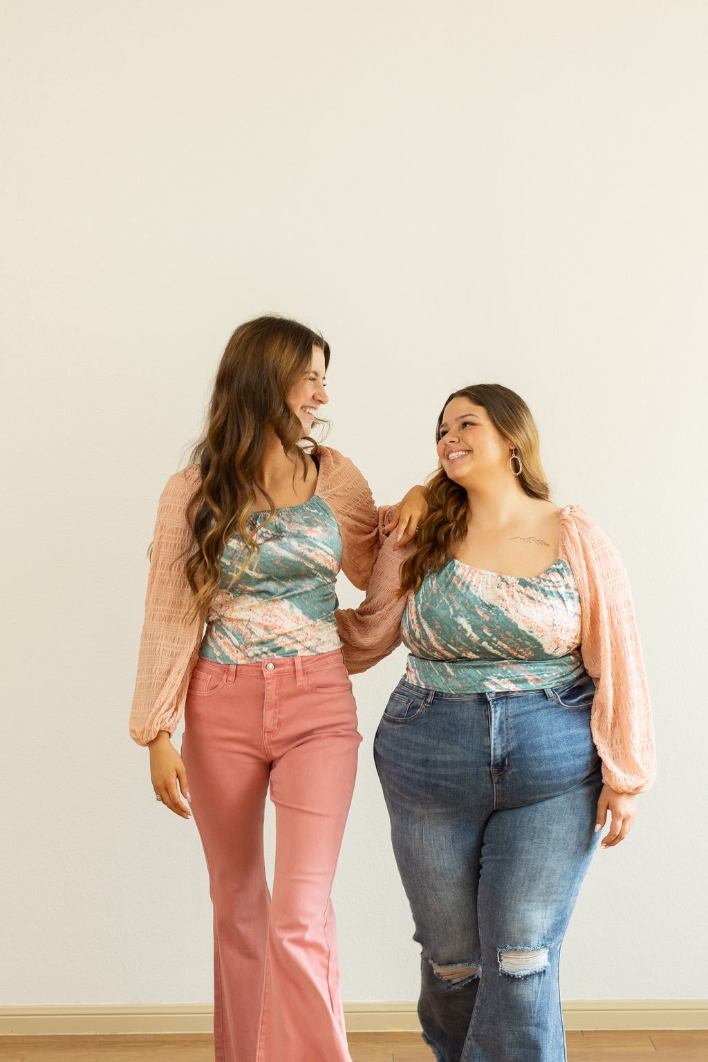 Taylor (5' 7" and Size 8 or M) is wearing our S Savannah (5' 9" and Size 4 or S) is wearing our S