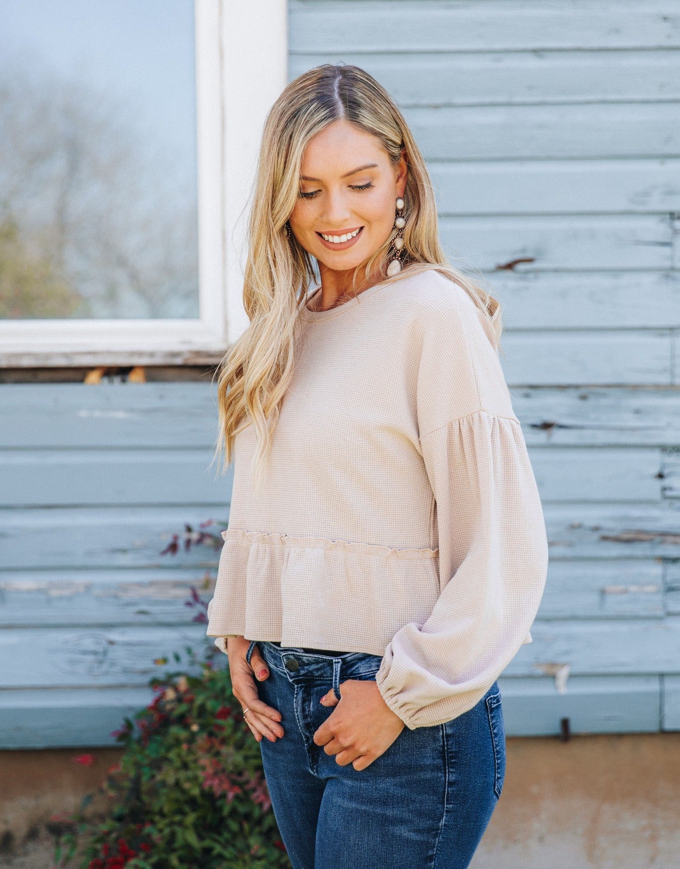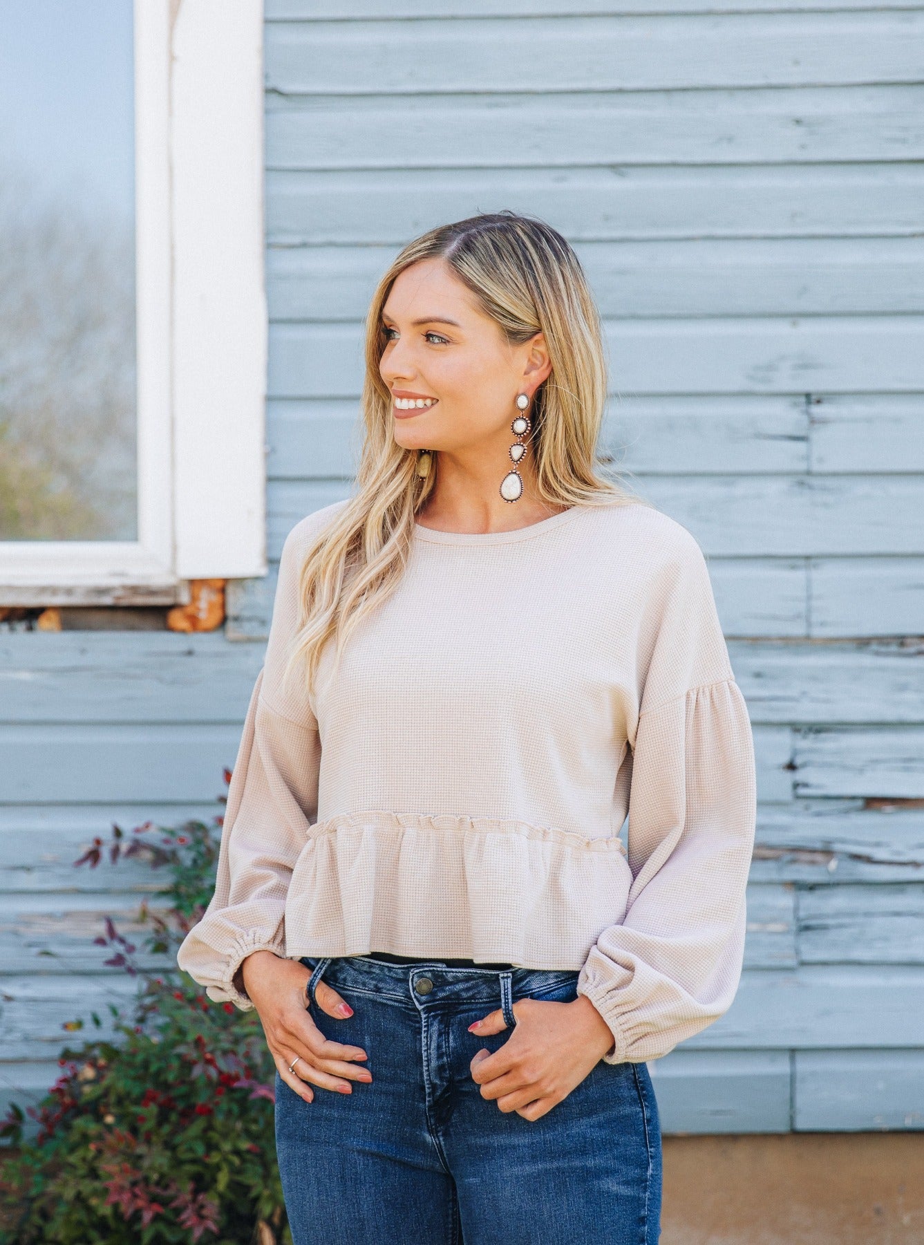 This adorable blouse will be your staple blouse this fall! This blouse is a must-have style, just add your fav high-rise jeans or your favorite pair of leggings.