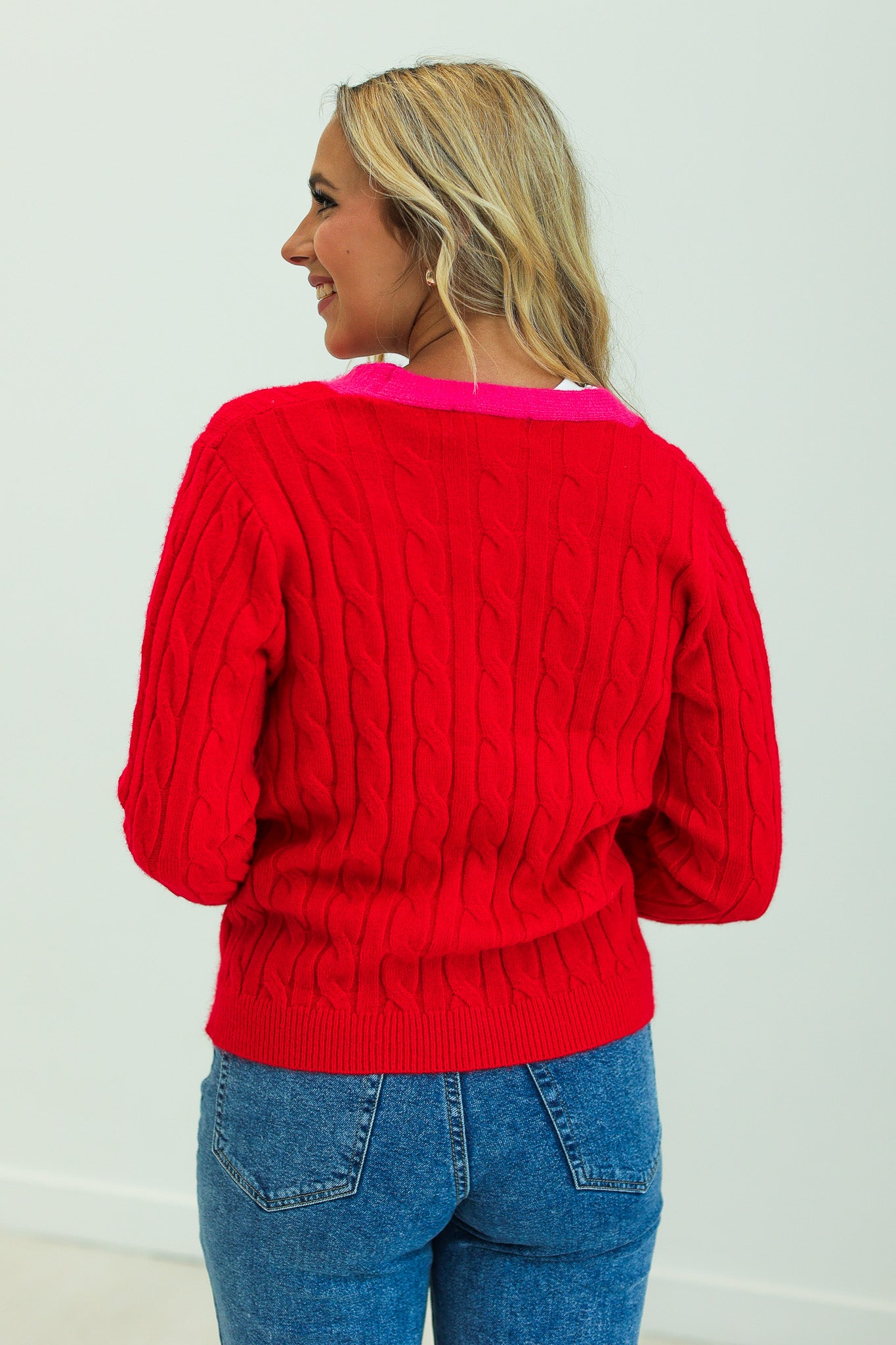 This relaxed-fit cardigan features playful patches and offers high stretch for a comfortable, flexible fit. The unlined design keeps it lightweight, while the button closure adds a classic touch to this whimsical holiday piece.