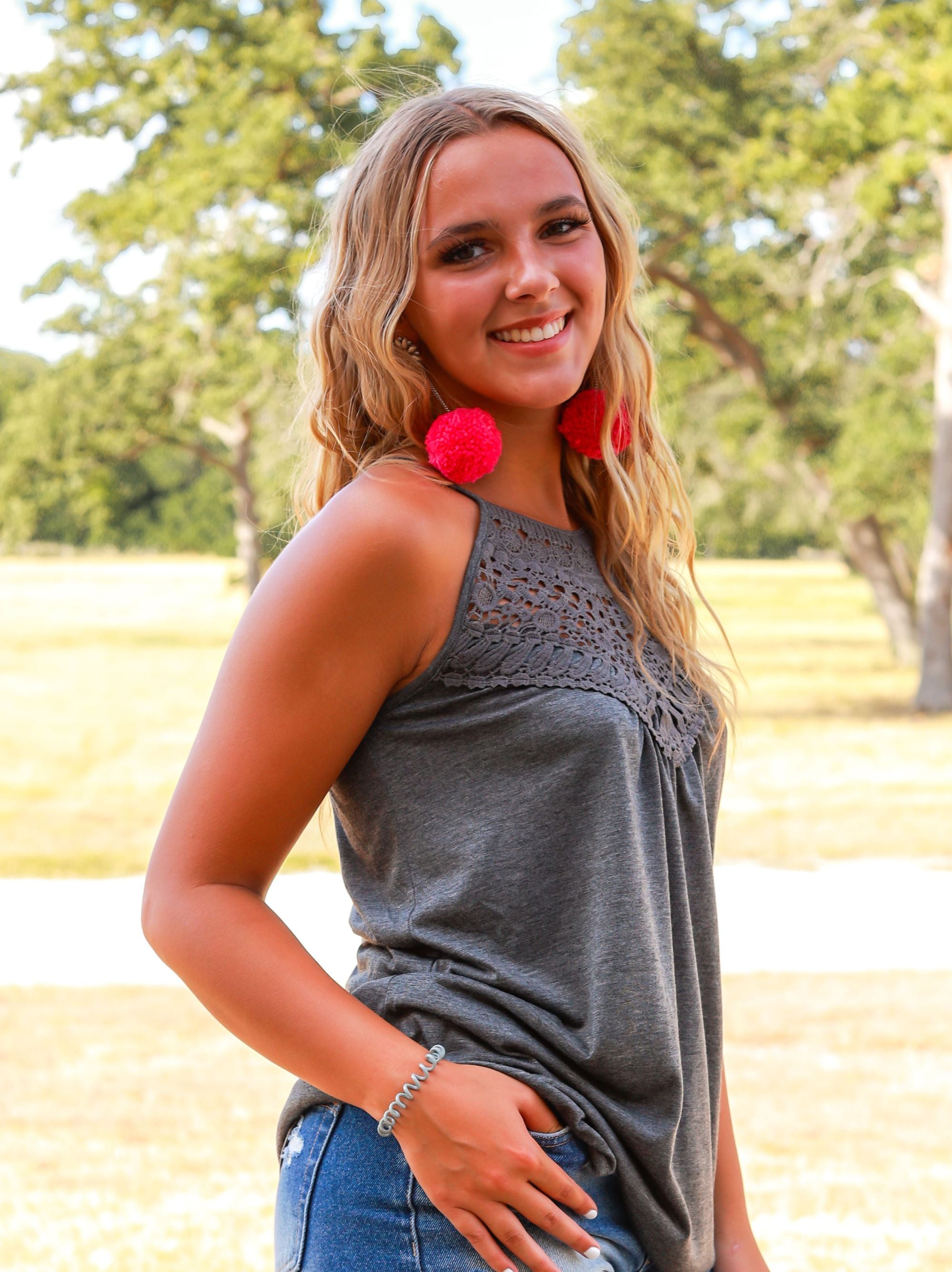 Stay cool this summer in our adorable crochet tank. Dress it up for a concert, in a mini skirt, and your fave wedges, or dress it down with shorts and some comfy sneakers, there's no wrong way to style this!