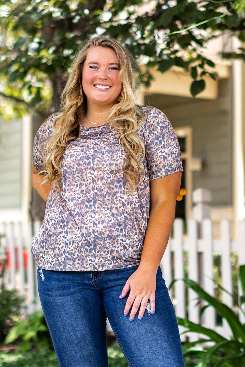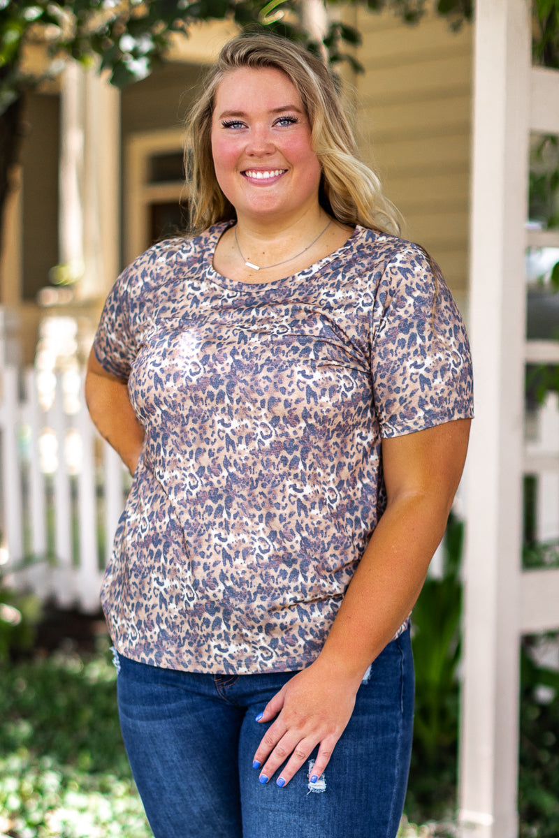 Vintage Cheetah Crew Neck Tee(Brown,S)