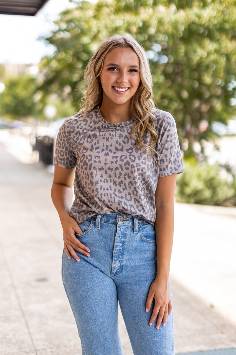 Vintage Leopard Crewneck Tee(Leopard,S)